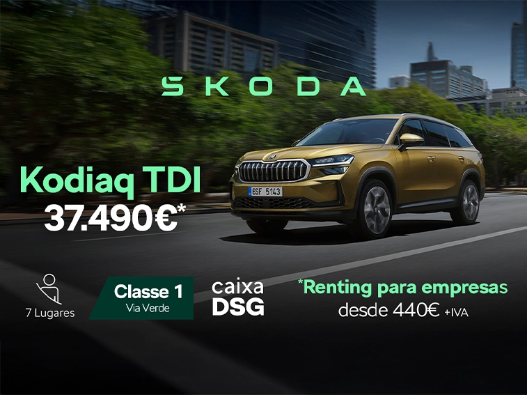 Disponível com 5 ou 7 lugares, Classe 1 na Via Verde e caixa DSG, o Kodiaq é o SUV pensado para quem precisa de espaço, segurança e tecnologia no dia a dia — sem abdicar do conforto.
