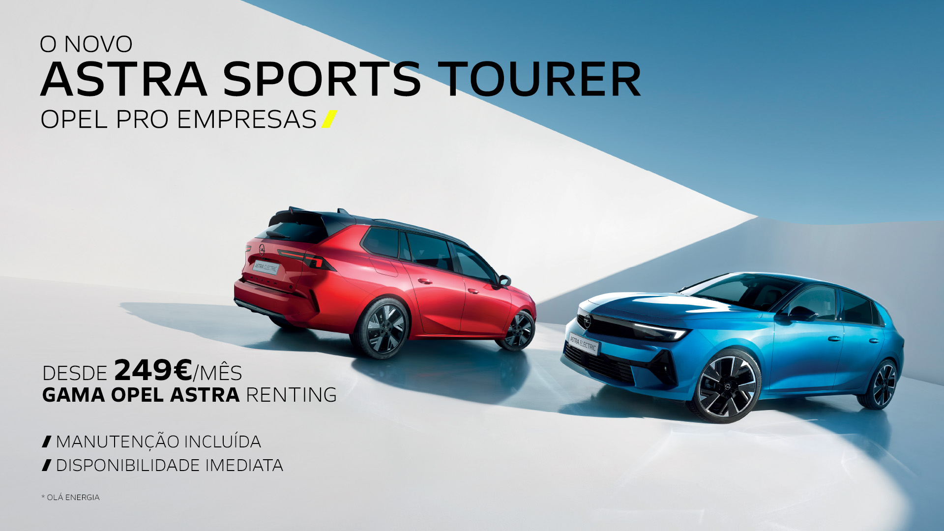 A Opel inicia, este mês, a sua campanha Opel Pro Empresas. Esta iniciativa inovadora visa proporcionar soluções de mobilidade eficientes e acessíveis para empresas e empresários em nome individual, dando especial ênfase especial à abrangente gama Astra, na qual se inclui agora a sua mais recente adição 100% elétrica, o Astra Sports Tourer Electric. Também a totalmente renovada gama de veículos comerciais é proposta com condições especialmente competitivas para clientes empresariais.